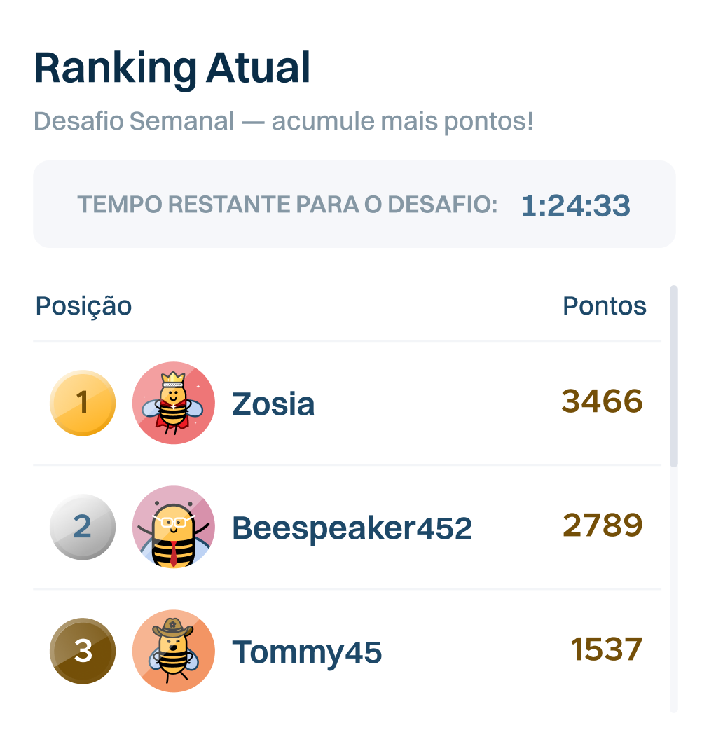 Suba no ranking, compita com outros alunos e torne o aprendizado divertido e recompensador.