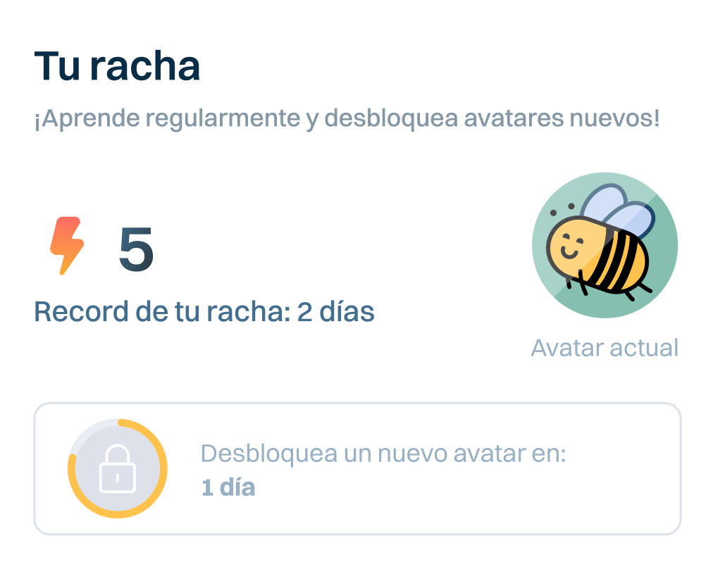 Mantén tu racha en pie con lecciones diarias y recordatorios.