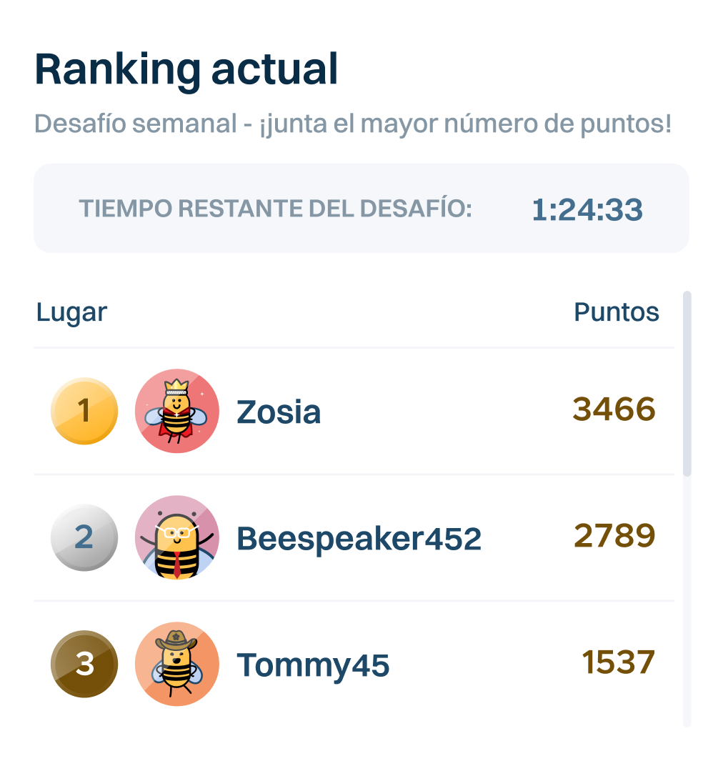 Mantén tu motivación con puntos, trofeos, y seguimiento de tu progreso que serán de ayuda para construir hábitos de aprendizaje.