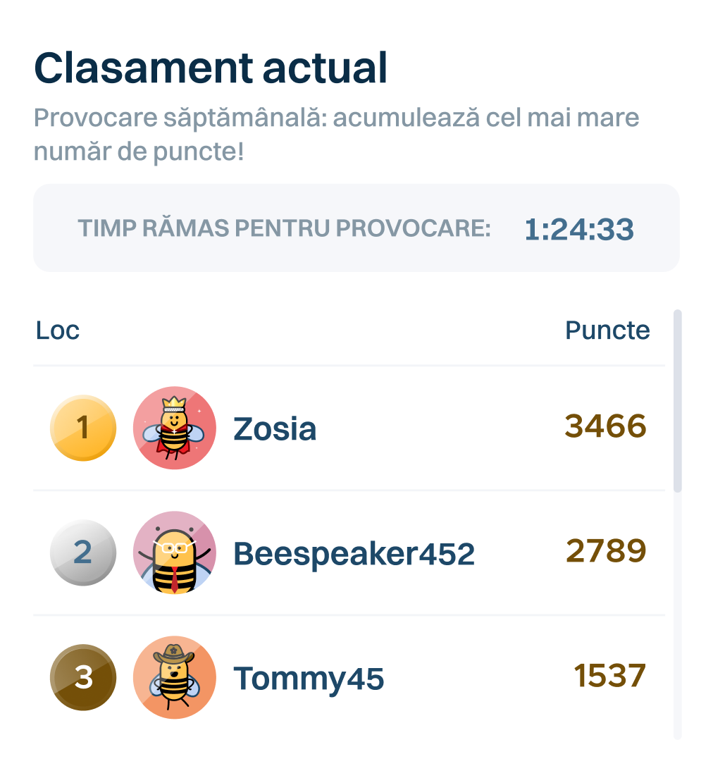 Urcă în clasamente, concurează cu alți cursanți și transformă învățarea limbilor străine într-o activitate distractivă și plină de satisfacții.