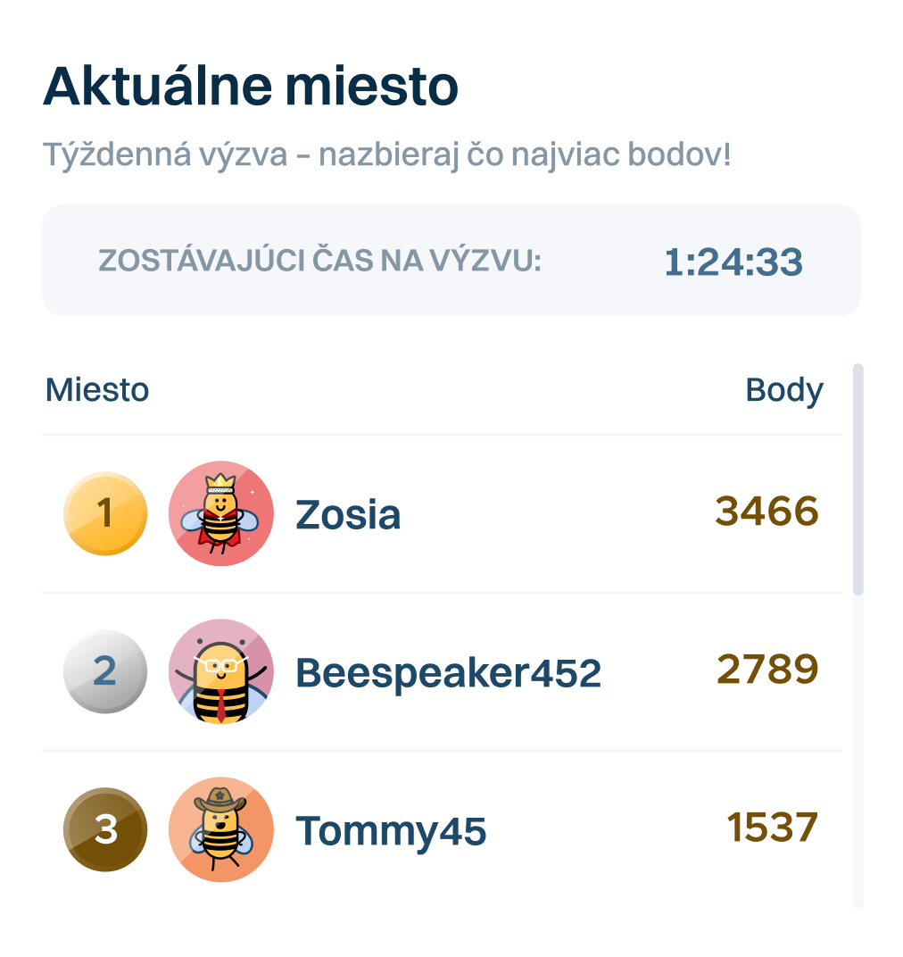 Zvyšuj svoje miesto v rebríčku, súťaž s ostatnými študentmi a sprav učenie jazykov zábavným a odmeňujúcim.